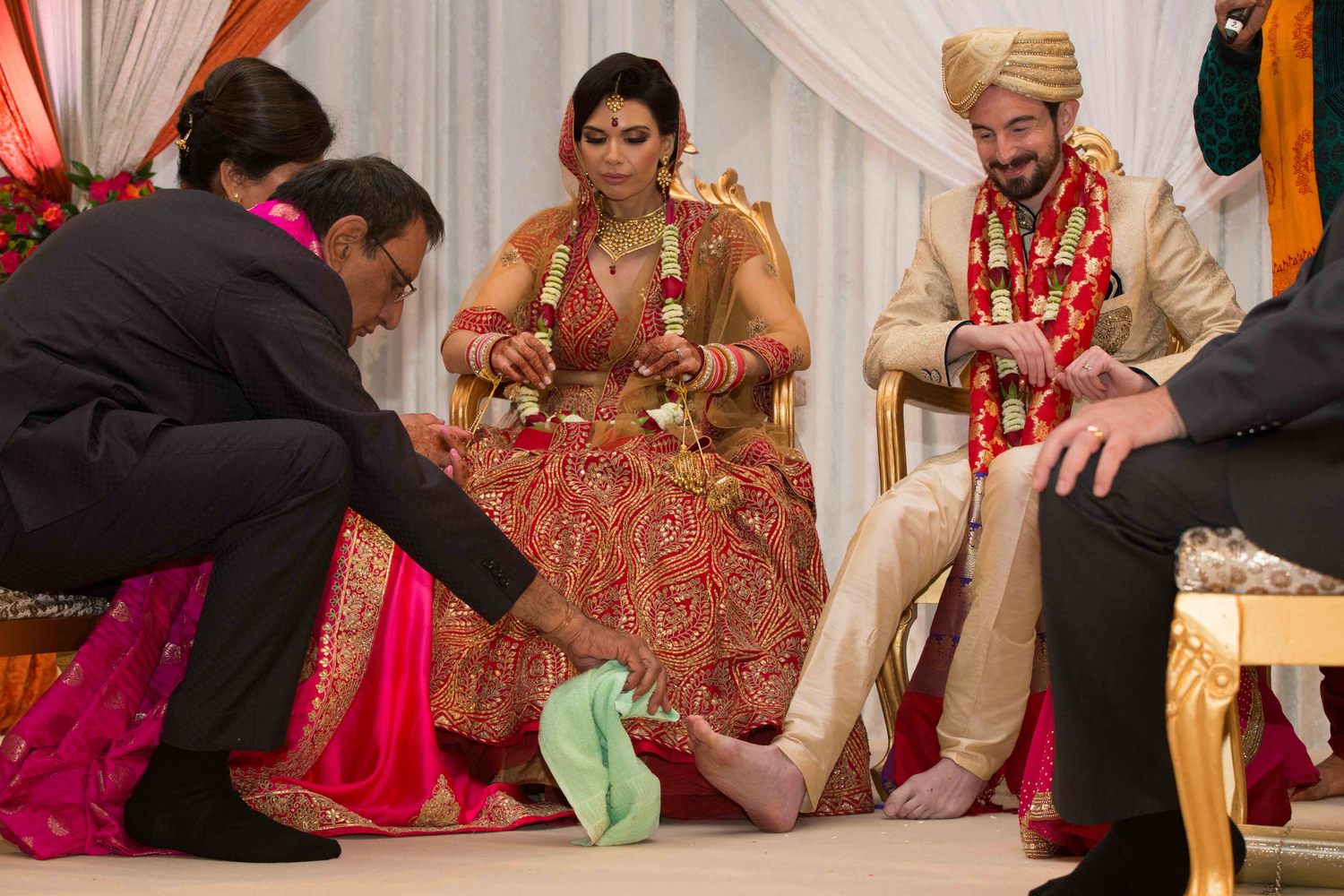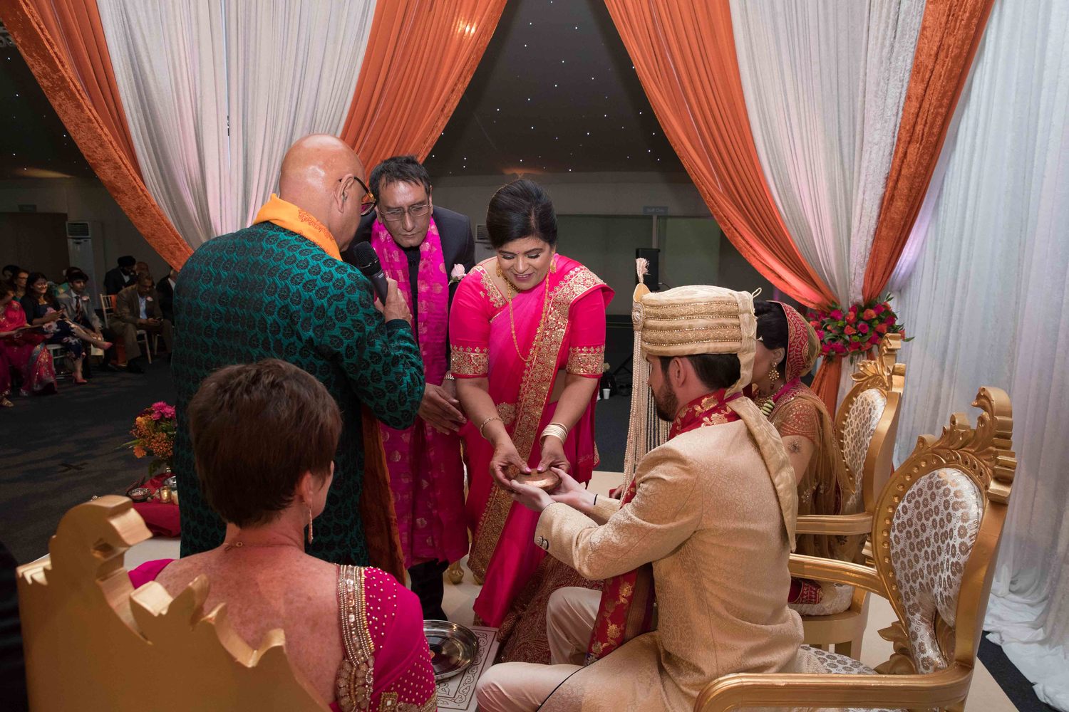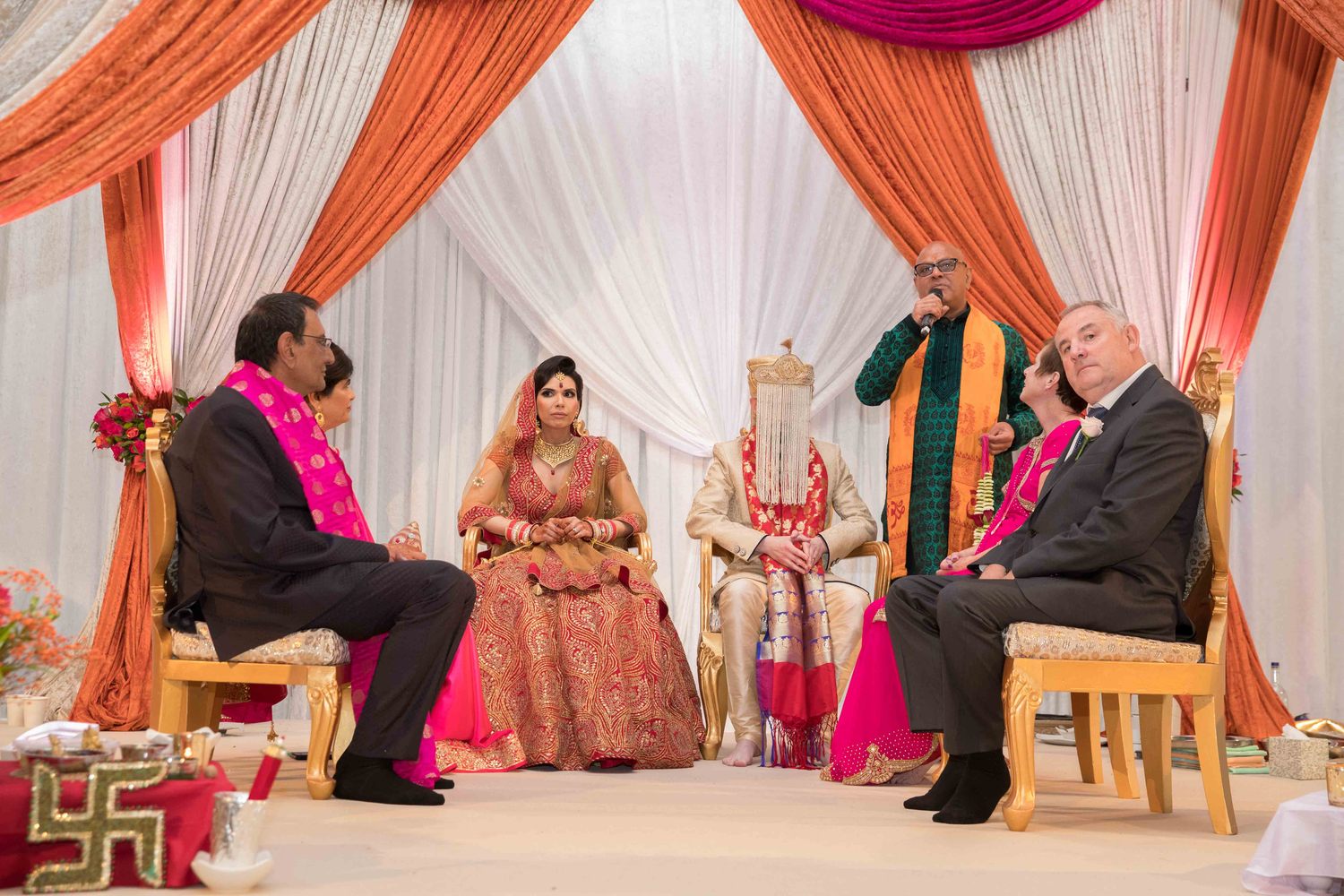 The Groom is made comfortable and seated along with his best man, now the parents in law to be joins him in the mandap, I look at the guest and make sure very one has accommodated themselves and are ready for the ceremony.After a brief introduction and a welcome the wedding begins. Sankalpa is made by the bride parents that on this auspicious day we in front of Lord Ganesh and The Grahadi Devtas the Mandap Matrukas Kuldevi and so on; that is my domain, are going to give our daughter to this man, so let us have the appropriate Puniya for this Kanyadan. The Groom is asked that we wish to worship you as Lord Vishnu may we have your permission.