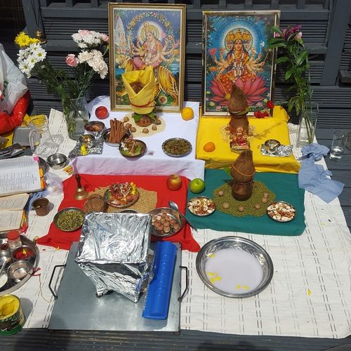 The nine planets as well as the Sun and the whole Cosmos is brought to your presence to worship. Usually this is done at the time of marriage and done on many occasions when ever a wish is fulfilled,