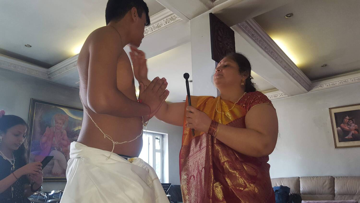 Janeu the YagIyopavit Upanayee Janoi the Yagnopait . The scared thread worn by the bhramins and the visiyas and the Kshatriya and now also by the sudras; girls and women. This ceremony involves the provocations of the gods just as in the graha shanti then the havan, eventually the batuk takes his vows and the sacred thread is worn by him to maintain celibacy and to be serious in his career seeking till he can support his wife on his own.