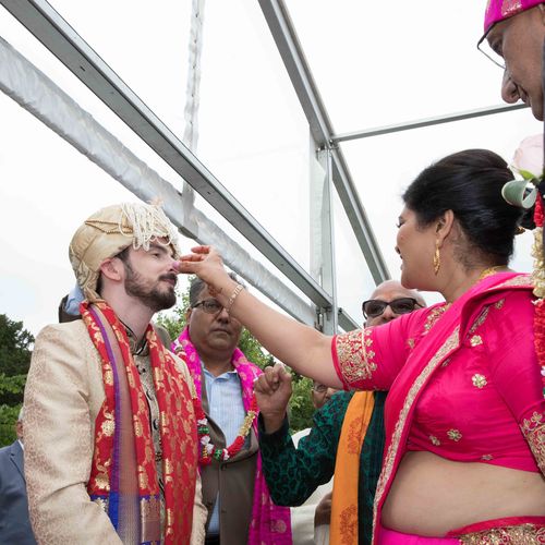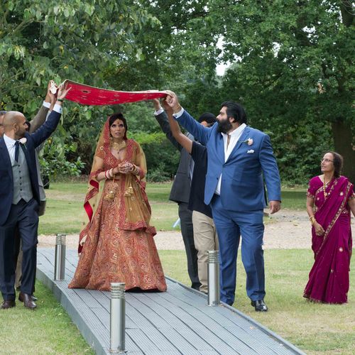 Either at the entrance of the hall or inside the hall at a designated, usually an isle made by the mandap arrangers, Pokhnoo is performed. This cast away the evil and has a Vedic meaning to it as well I will explain at the ceremony if you wish.