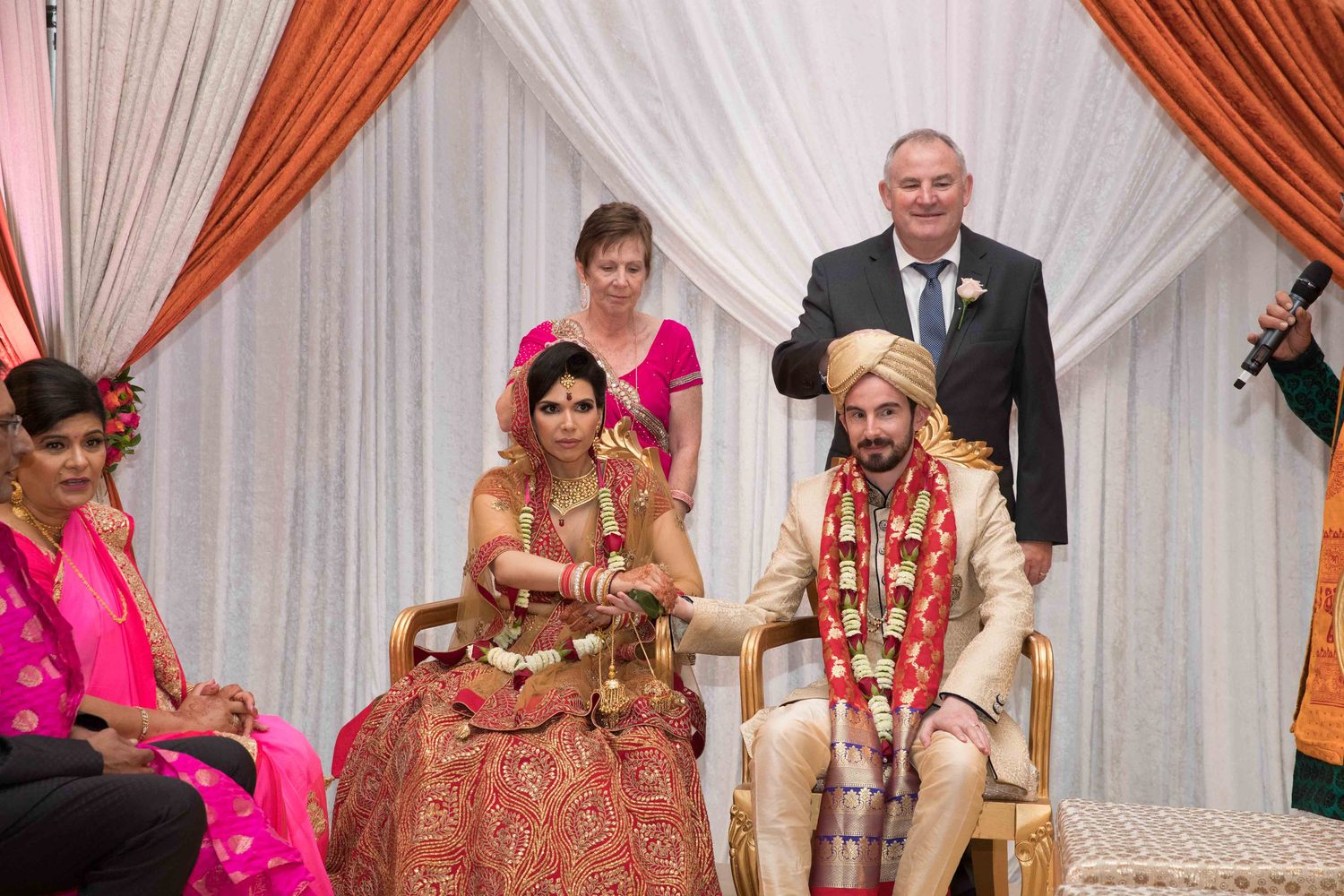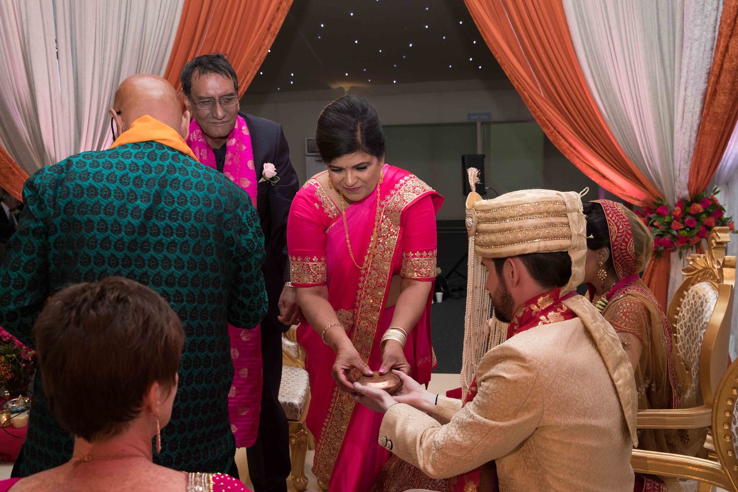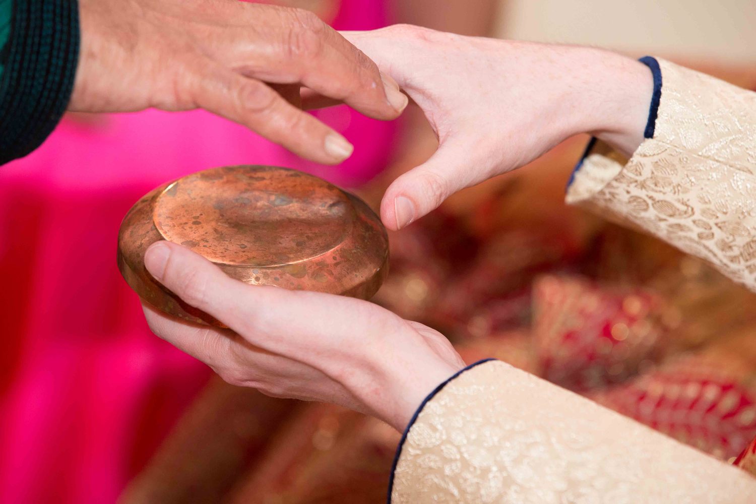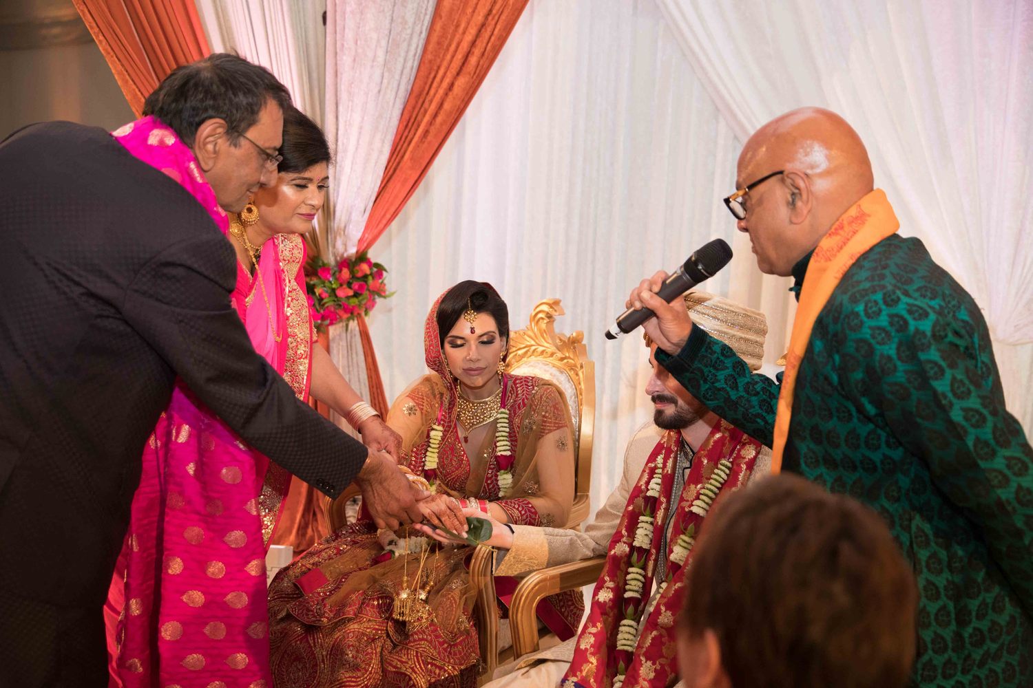 Now the Groom is worshiped as Lord Vishnu He offered Vishter, Achminium, Padhium and so on, followed by the Manglaashtak, Gowtra Uchar, the Bride is eagerly waiting for my cue to announce"KANYA PADHRAWO SAWADHAN!!!" She walks down the aisle usually accompanied by her maternal uncles or her friends, arrives in the mandap, to face her love, at an appropriate moment that is calculated by me according to their Jan ma Kundli, at a prices moment the veil Antar Patt is lifted off so both their eyes meet ,they garland each other, with the Varmala I unite them and tie them into Sanatan matrimony by the Knot Chedda Cheddi. Now the Family rituals follow if you are Mistrys then there is Addllo Paddllo, if Kutchies then Kaniyadan, if Brahman Chabb with moddiyo and the Brides Garchodoo to worn at the Mangal Ferras, Now although having had extensive experience in my field, I do need elaborations of your family traditions and rituals. Usually four married ladies from either side bless the couple while they are seated face to face.